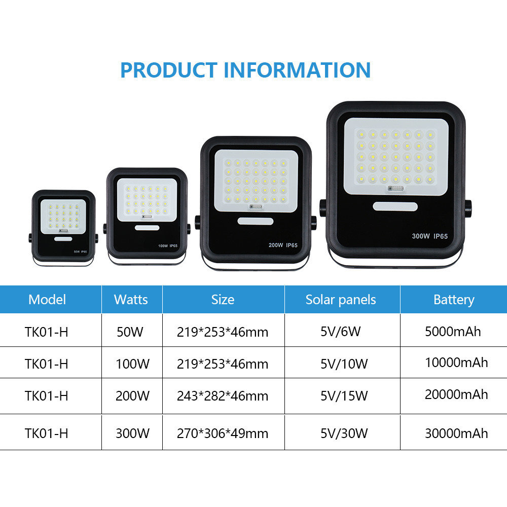| TK01-H 300W | 3,2V 30AH | 5V/6V 30W | 6-8 Stunden | ABS | SMD 2835 |